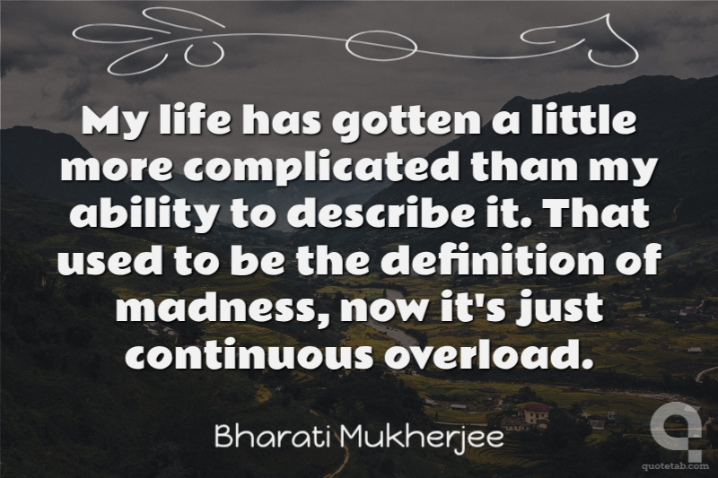 My life has gotten a little more complicated than my ability to describe it. That used to be the definition of madness, now it's just continuous overload.