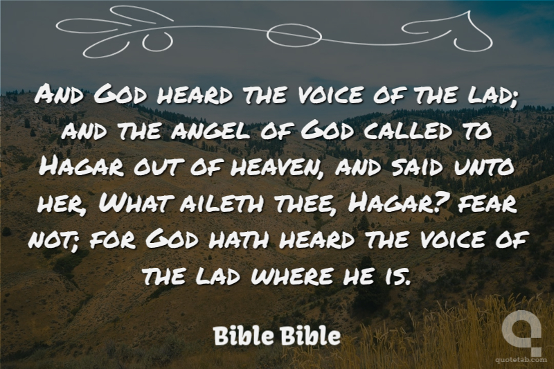 And God heard the voice of the lad; and the angel of God called to Hagar out of heaven, and said unto her, What aileth thee, Hagar? fear not; for God hath heard the voice of the lad where he is.