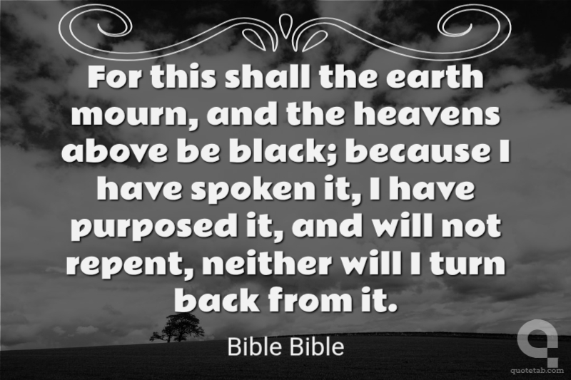 For this shall the earth mourn, and the heavens above be black; because I have spoken it, I have purposed it, and will not repent, neither will I turn back from it.