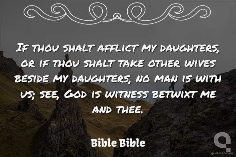 If thou shalt afflict my daughters, or if thou shalt take other wives beside my daughters, no man is with us; see, God is witness betwixt me and thee.