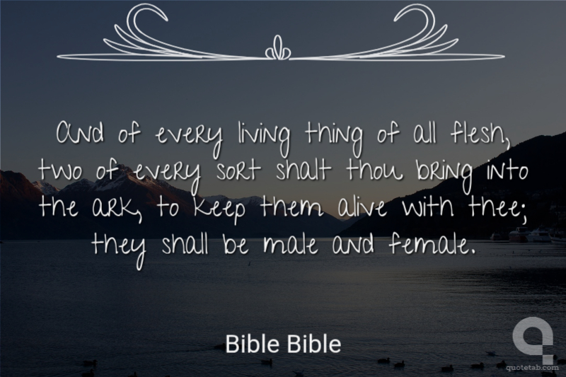 And of every living thing of all flesh, two of every sort shalt thou bring into the ark, to keep them alive with thee; they shall be male and female.