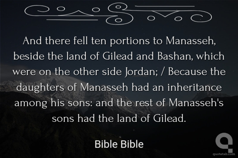 And there fell ten portions to Manasseh, beside the land of Gilead and Bashan, which were on the other side Jordan; / Because the daughters of Manasseh had an inheritance among his sons: and the rest of Manasseh's sons had the land of Gilead.
