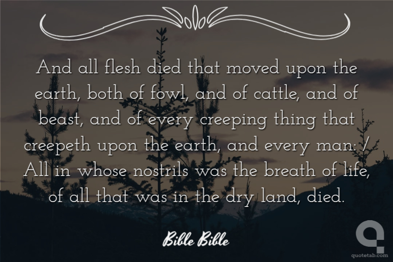 And all flesh died that moved upon the earth, both of fowl, and of cattle, and of beast, and of every creeping thing that creepeth upon the earth, and every man: / All in whose nostrils was the breath of life, of all that was in the dry land, died.