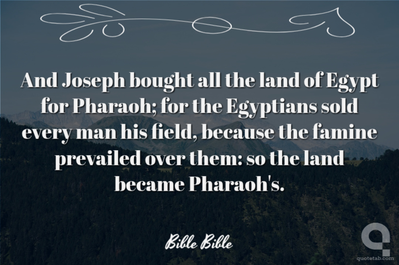 And Joseph bought all the land of Egypt for Pharaoh; for the Egyptians sold every man his field, because the famine prevailed over them: so the land became Pharaoh's.