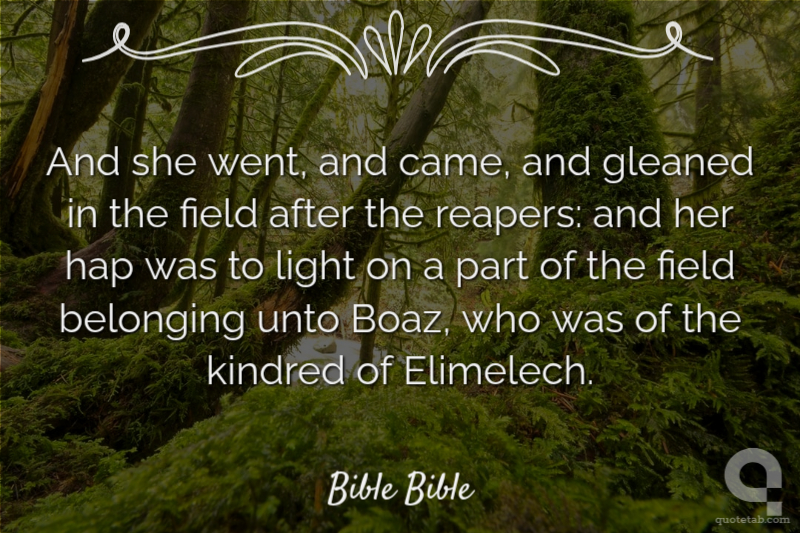 And she went, and came, and gleaned in the field after the reapers: and her hap was to light on a part of the field belonging unto Boaz, who was of the kindred of Elimelech.