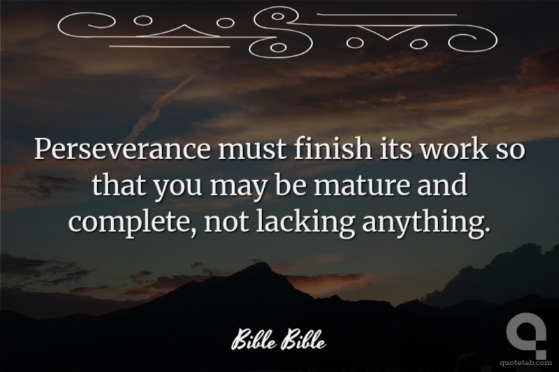 Perseverance must finish its work so that you may be mature and complete, not lacking anything.