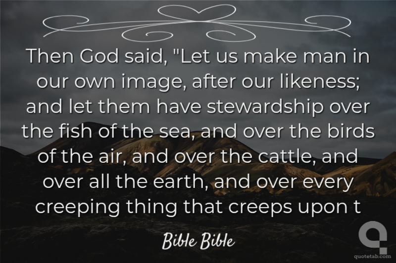 Then God said, "Let us make man in our own image, after our likeness; and let them have stewardship over the fish of the sea, and over the birds of the air, and over the cattle, and over all the earth, and over every creeping thing that creeps upon t