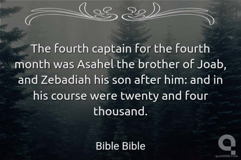 The fourth captain for the fourth month was Asahel the brother of Joab, and Zebadiah his son after him: and in his course were twenty and four thousand.