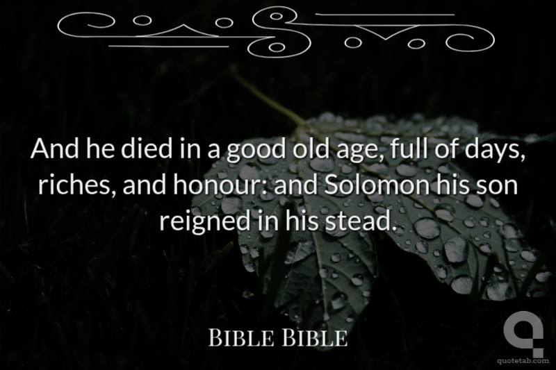 And he died in a good old age, full of days, riches, and honour: and Solomon his son reigned in his stead.