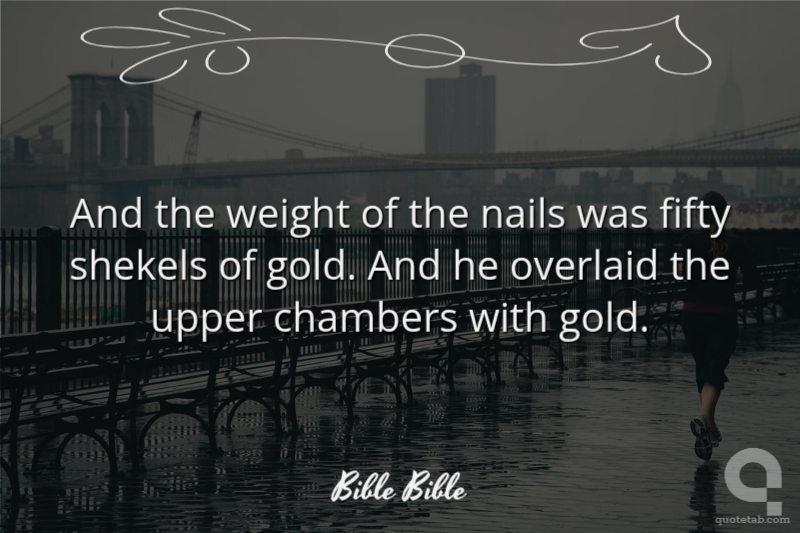 And the weight of the nails was fifty shekels of gold. And he overlaid the upper chambers with gold.