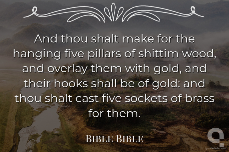 And thou shalt make for the hanging five pillars of shittim wood, and overlay them with gold, and their hooks shall be of gold: and thou shalt cast five sockets of brass for them.