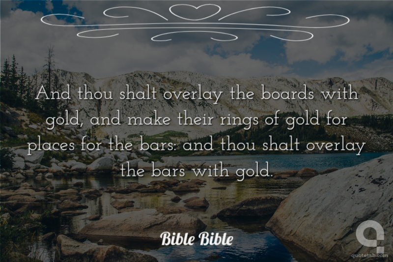 And thou shalt overlay the boards with gold, and make their rings of gold for places for the bars: and thou shalt overlay the bars with gold.