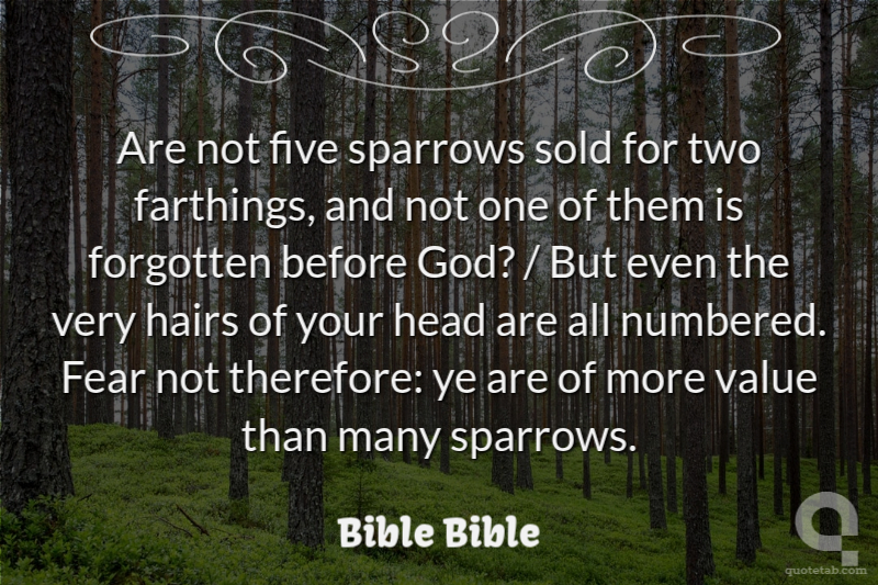 Are not five sparrows sold for two farthings, and not one of them is forgotten before God? / But even the very hairs of your head are all numbered. Fear not therefore: ye are of more value than many sparrows.