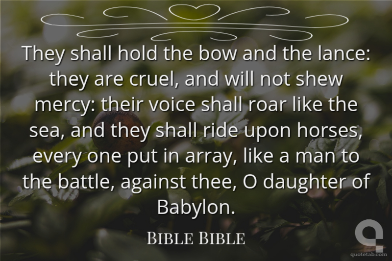 They shall hold the bow and the lance: they are cruel, and will not shew mercy: their voice shall roar like the sea, and they shall ride upon horses, every one put in array, like a man to the battle, against thee, O daughter of Babylon.