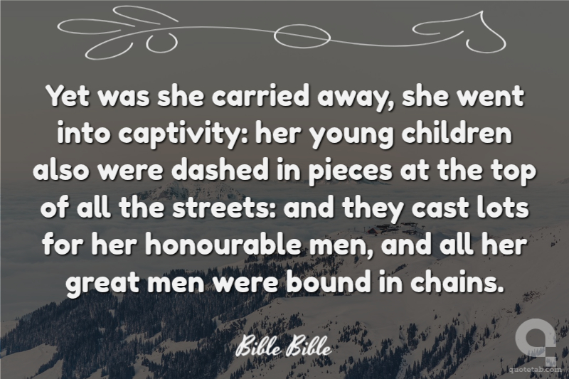 Yet was she carried away, she went into captivity: her young children also were dashed in pieces at the top of all the streets: and they cast lots for her honourable men, and all her great men were bound in chains.