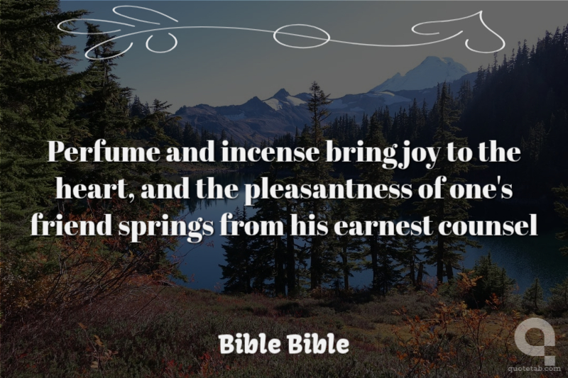 Perfume and incense bring joy to the heart, and the pleasantness of one's friend springs from his earnest counsel