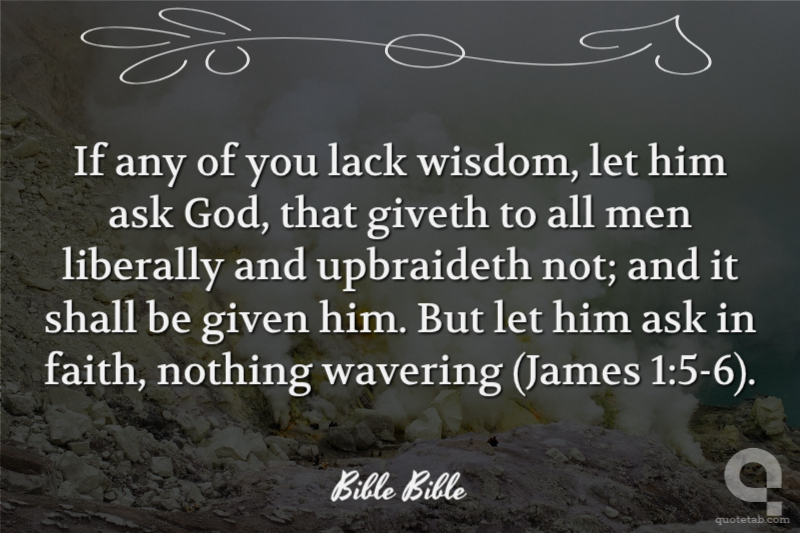 If any of you lack wisdom, let him ask God, that giveth to all men liberally and upbraideth not; and it shall be given him. But let him ask in faith, nothing wavering (James 1:5-6).
