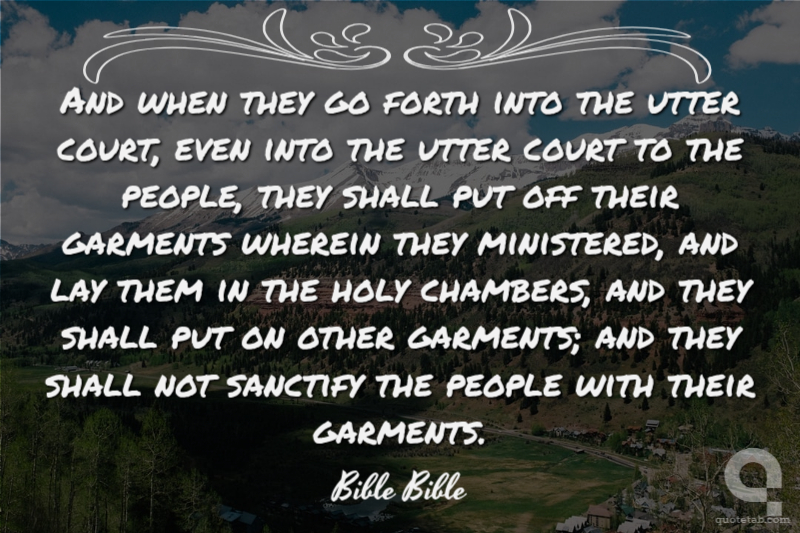 And when they go forth into the utter court, even into the utter court to the people, they shall put off their garments wherein they ministered, and lay them in the holy chambers, and they shall put on other garments; and they shall not sanctify the people with their garments.