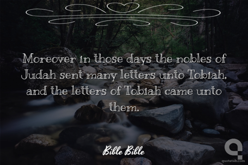 Moreover in those days the nobles of Judah sent many letters unto Tobiah, and the letters of Tobiah came unto them.