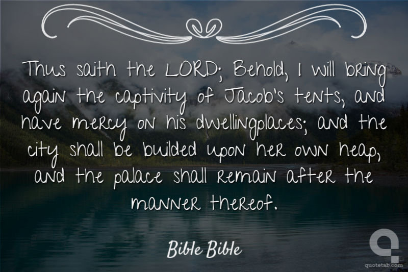 Thus saith the LORD; Behold, I will bring again the captivity of Jacob's tents, and have mercy on his dwellingplaces; and the city shall be builded upon her own heap, and the palace shall remain after the manner thereof.
