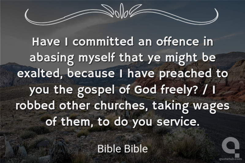 Have I committed an offence in abasing myself that ye might be exalted, because I have preached to you the gospel of God freely? / I robbed other churches, taking wages of them, to do you service.