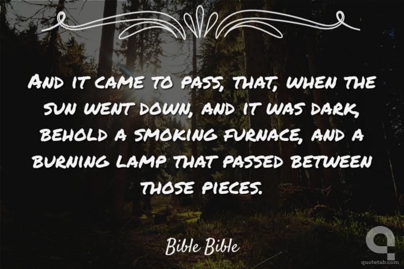 And it came to pass, that, when the sun went down, and it was dark, behold a smoking furnace, and a burning lamp that passed between those pieces.