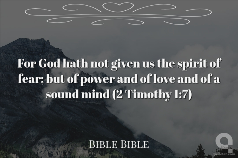 For God hath not given us the spirit of fear; but of power and of love and of a sound mind (2 Timothy 1:7)