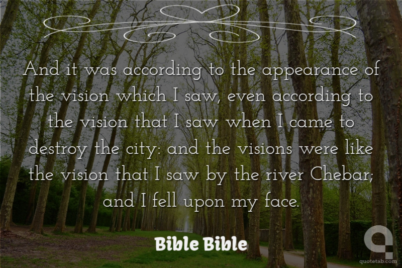 And it was according to the appearance of the vision which I saw, even according to the vision that I saw when I came to destroy the city: and the visions were like the vision that I saw by the river Chebar; and I fell upon my face.