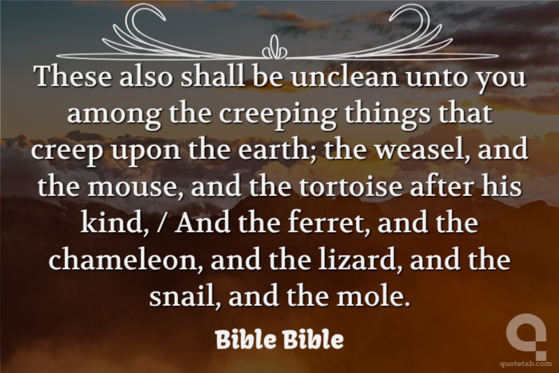 These also shall be unclean unto you among the creeping things that creep upon the earth; the weasel, and the mouse, and the tortoise after his kind, / And the ferret, and the chameleon, and the lizard, and the snail, and the mole.