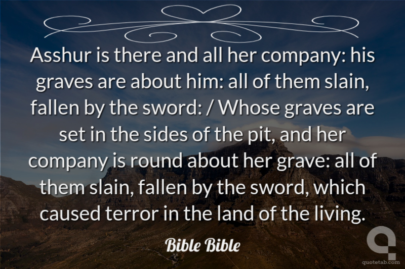 Asshur is there and all her company: his graves are about him: all of them slain, fallen by the sword: / Whose graves are set in the sides of the pit, and her company is round about her grave: all of them slain, fallen by the sword, which caused terror in the land of the living.