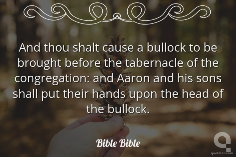 And thou shalt cause a bullock to be brought before the tabernacle of the congregation: and Aaron and his sons shall put their hands upon the head of the bullock.
