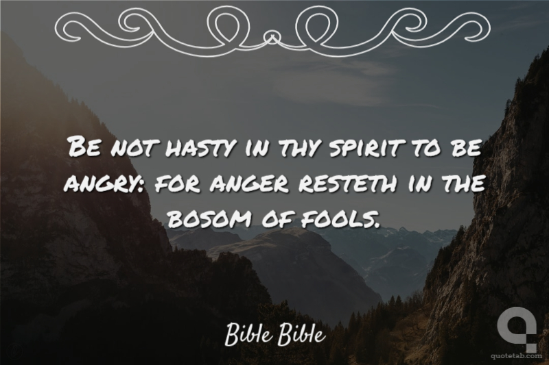 Be not hasty in thy spirit to be angry: for anger resteth in the bosom of fools.