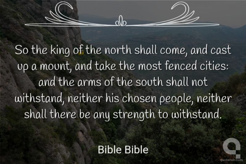 So the king of the north shall come, and cast up a mount, and take the most fenced cities: and the arms of the south shall not withstand, neither his chosen people, neither shall there be any strength to withstand.