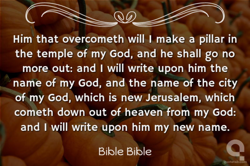 Him that overcometh will I make a pillar in the temple of my God, and he shall go no more out: and I will write upon him the name of my God, and the name of the city of my God, which is new Jerusalem, which cometh down out of heaven from my God: and I will write upon him my new name.