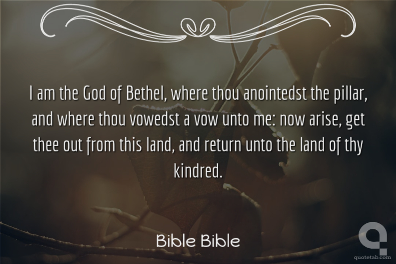 I am the God of Bethel, where thou anointedst the pillar, and where thou vowedst a vow unto me: now arise, get thee out from this land, and return unto the land of thy kindred.