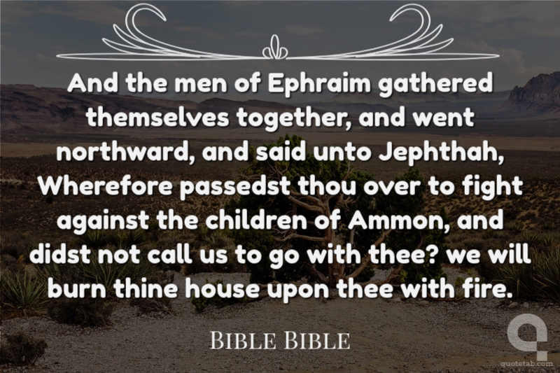 And the men of Ephraim gathered themselves together, and went northward, and said unto Jephthah, Wherefore passedst thou over to fight against the children of Ammon, and didst not call us to go with thee? we will burn thine house upon thee with fire.