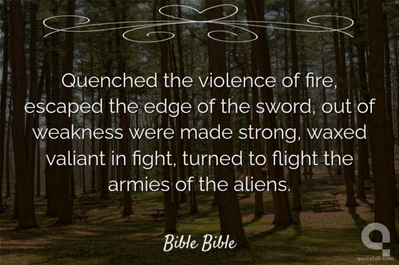 Quenched the violence of fire, escaped the edge of the sword, out of weakness were made strong, waxed valiant in fight, turned to flight the armies of the aliens.