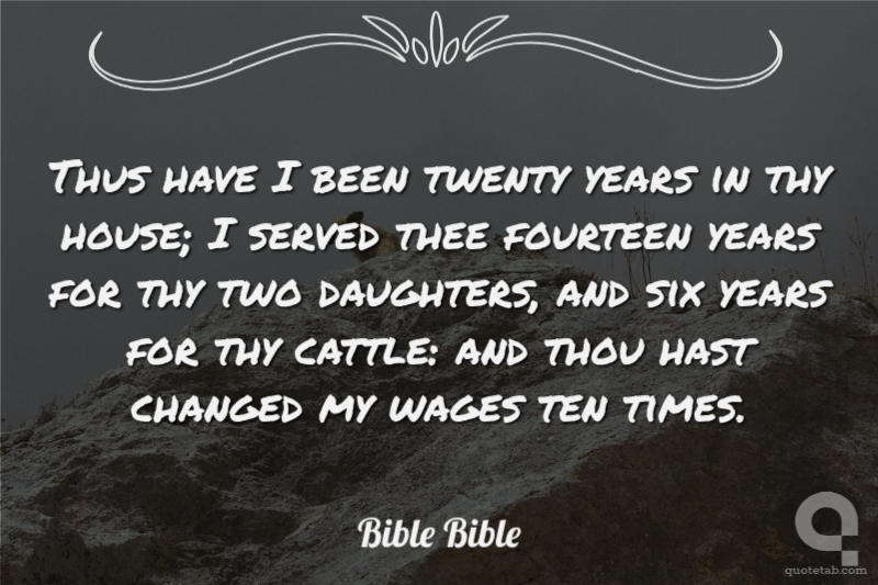 Thus have I been twenty years in thy house; I served thee fourteen years for thy two daughters, and six years for thy cattle: and thou hast changed my wages ten times.