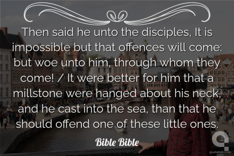 Then said he unto the disciples, It is impossible but that offences will come: but woe unto him, through whom they come! / It were better for him that a millstone were hanged about his neck, and he cast into the sea, than that he should offend one of these little ones.