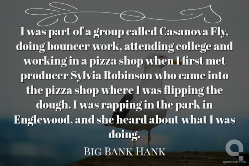 I was part of a group called Casanova Fly, doing bouncer work, attending college and working in a pizza shop when I first met producer Sylvia Robinson who came into the pizza shop where I was flipping the dough. I was rapping in the park in Englewood, and she heard about what I was doing.