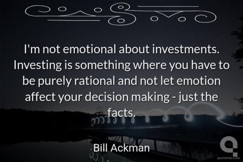 I'm not emotional about investments. Investing is something where you have to be purely rational and not let emotion affect your decision making - just the facts.