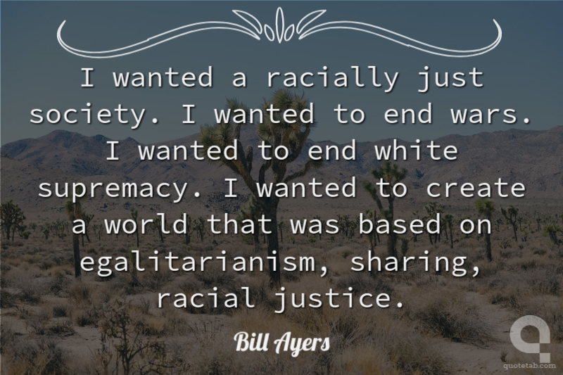I wanted a racially just society. I wanted to end wars. I wanted to end white supremacy. I wanted to create a world that was based on egalitarianism, sharing, racial justice.