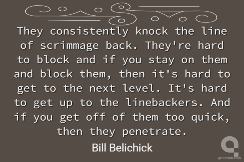 They consistently knock the line of scrimmage back. They're hard to block and if you stay on them and block them, then it's hard to get to the next level. It's hard to get up to the linebackers. And if you get off of them too quick, then they penetrate.