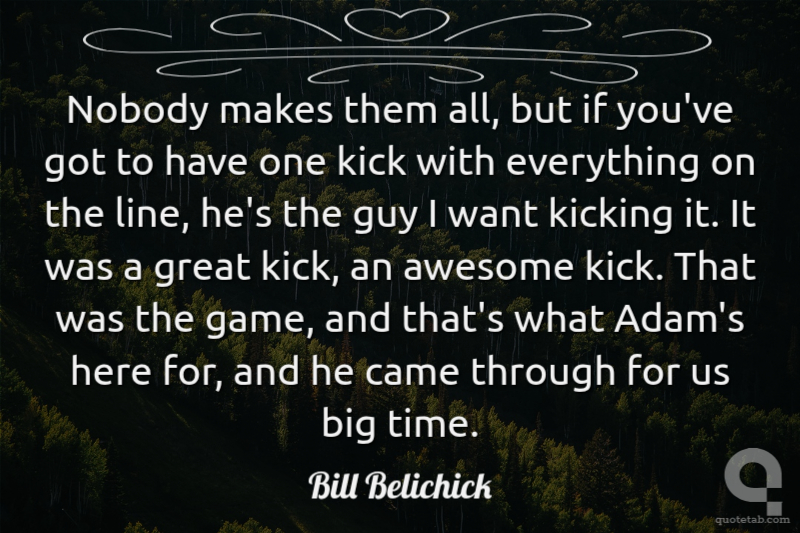 Nobody makes them all, but if you've got to have one kick with everything on the line, he's the guy I want kicking it. It was a great kick, an awesome kick. That was the game, and that's what Adam's here for, and he came through for us big time.