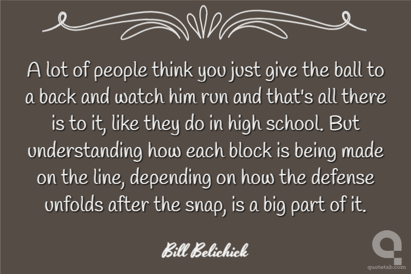 A lot of people think you just give the ball to a back and watch him run and that's all there is to it, like they do in high school. But understanding how each block is being made on the line, depending on how the defense unfolds after the snap, is a big part of it.