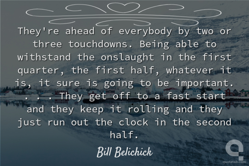 They're ahead of everybody by two or three touchdowns. Being able to withstand the onslaught in the first quarter, the first half, whatever it is, it sure is going to be important. . . . They get off to a fast start and they keep it rolling and they just run out the clock in the second half.