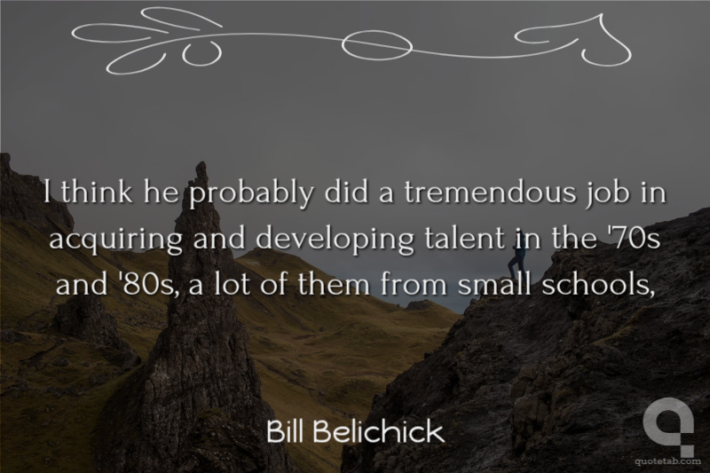 I think he probably did a tremendous job in acquiring and developing talent in the '70s and '80s, a lot of them from small schools,