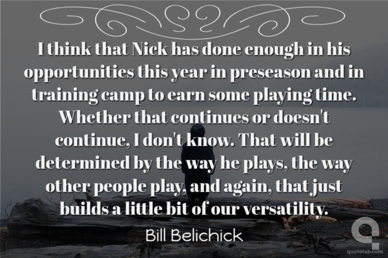 I think that Nick has done enough in his opportunities this year in preseason and in training camp to earn some playing time. Whether that continues or doesn't continue, I don't know. That will be determined by the way he plays, the way other people play, and again, that just builds a little bit of our versatility.