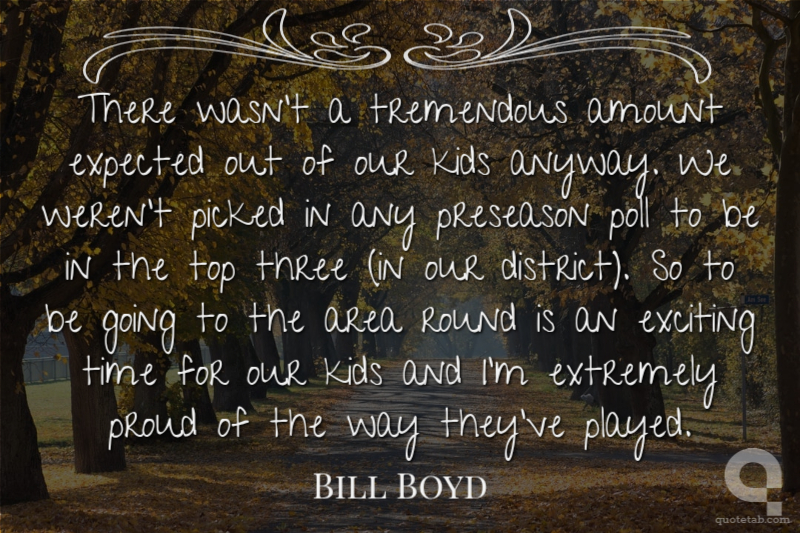 There wasn't a tremendous amount expected out of our kids anyway. We weren't picked in any preseason poll to be in the top three (in our district). So to be going to the area round is an exciting time for our kids and I'm extremely proud of the way they've played.