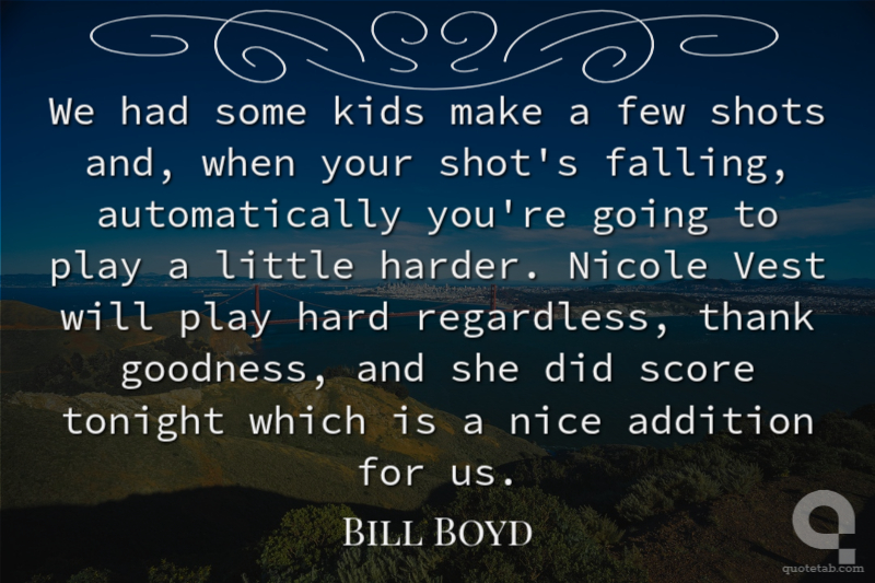 We had some kids make a few shots and, when your shot's falling, automatically you're going to play a little harder. Nicole Vest will play hard regardless, thank goodness, and she did score tonight which is a nice addition for us.